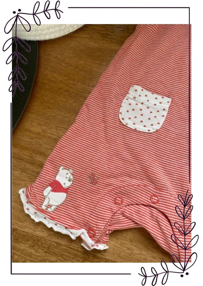 Combinaison d été neuve sans étiquette Winnie the pooh ou l ourson Orange corail rayé et brodée Pressions à l entrejambe ⚠️ vérifier taille et peluche ?