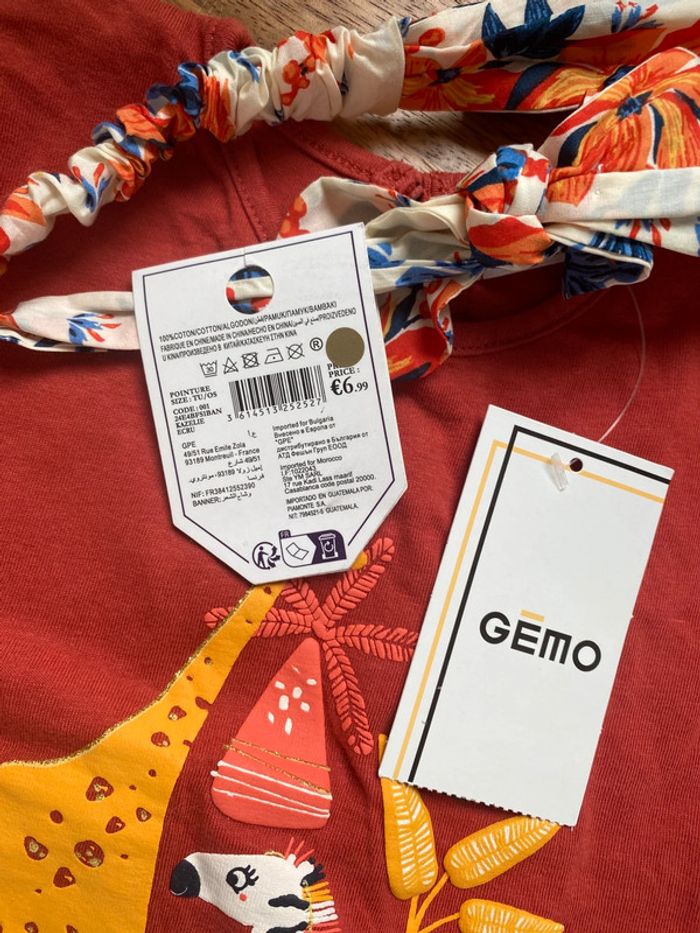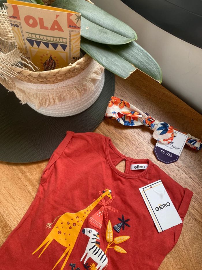 🌸 Tee shirt manches courtes Gemo couleur orange Terra cotta, neuf avec étiquette, jolie fermeture goutte d eau dans le dos 🌸 petit bandeau bébé sergent major neuf avec étiquette pour finir la tenue