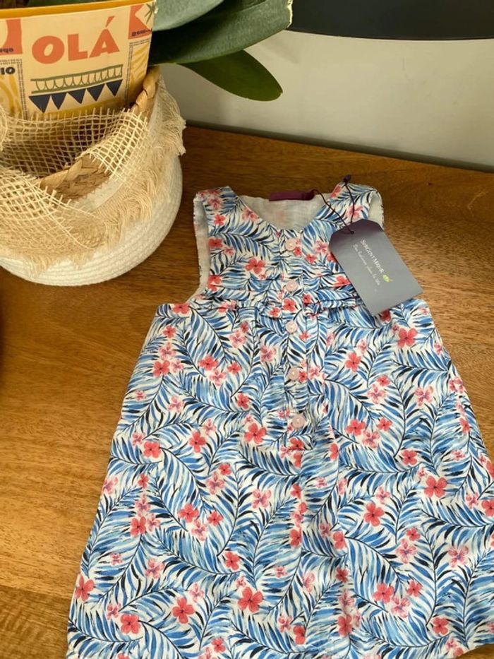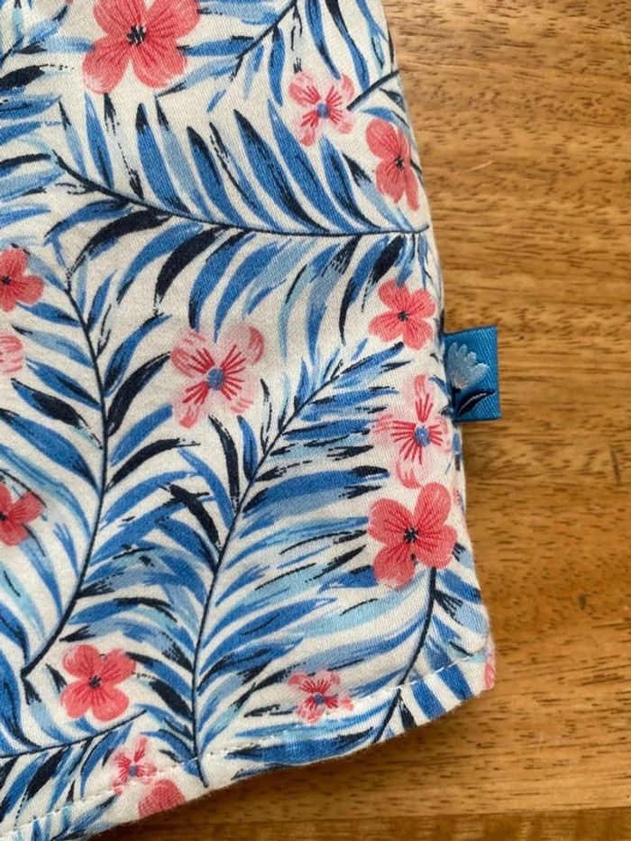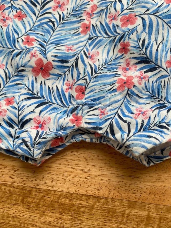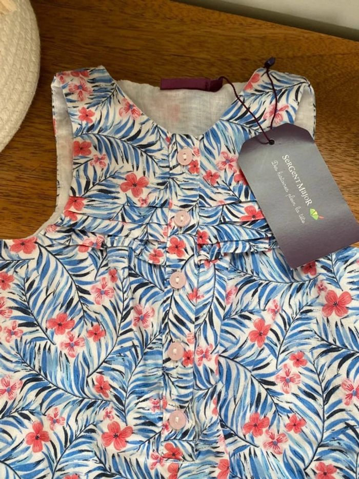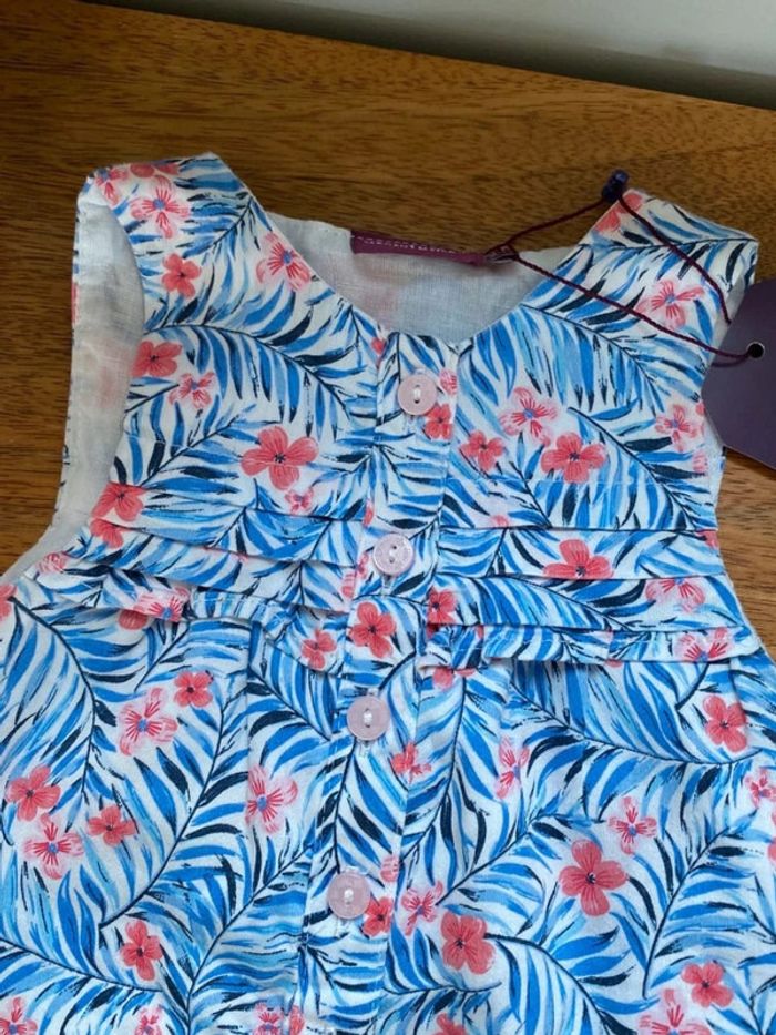 🌸 Combinaison sergent major neuve avec étiquette 🌸 Bleue turquoise à fleurs roses, pressionnée à l entrejambe