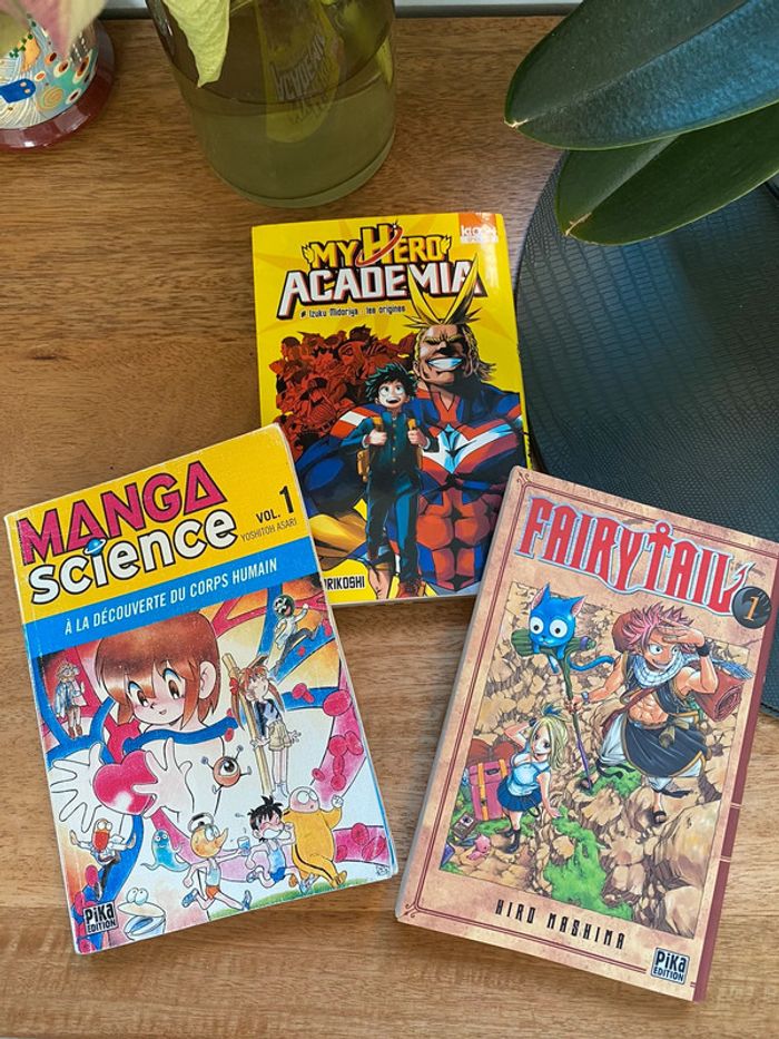 Livres enfants Trois premiers tomes pour découvrir des univers variés Manga science Pika éditions tome 1 My héro academia tome 1 Fairy tail tome 1