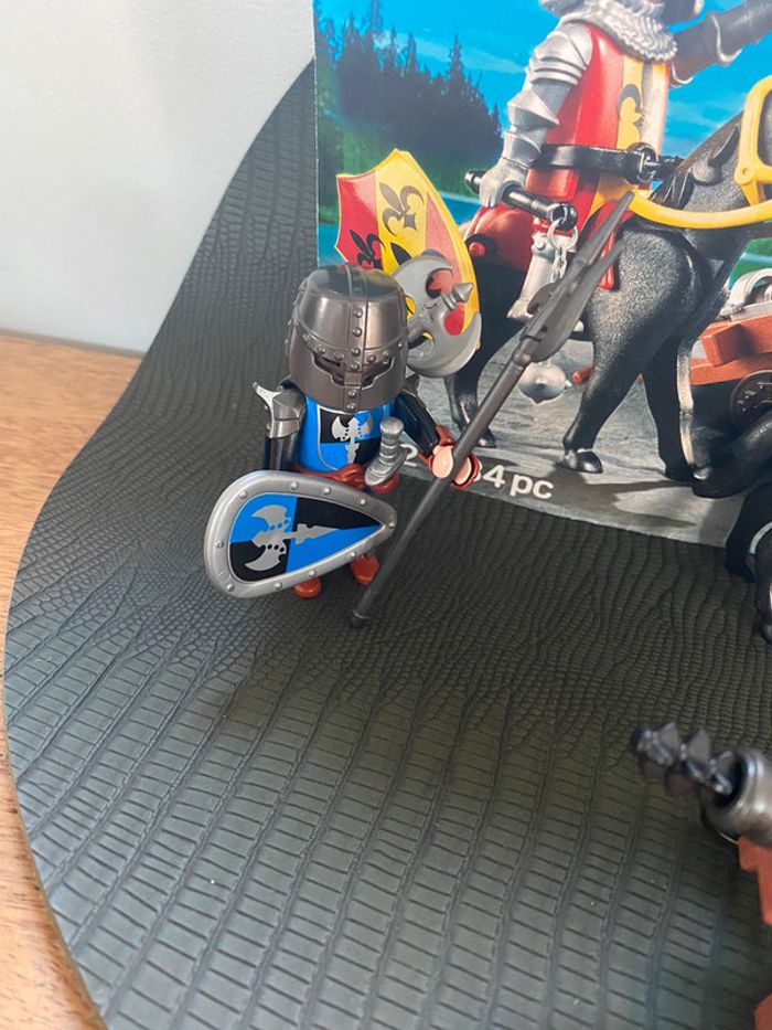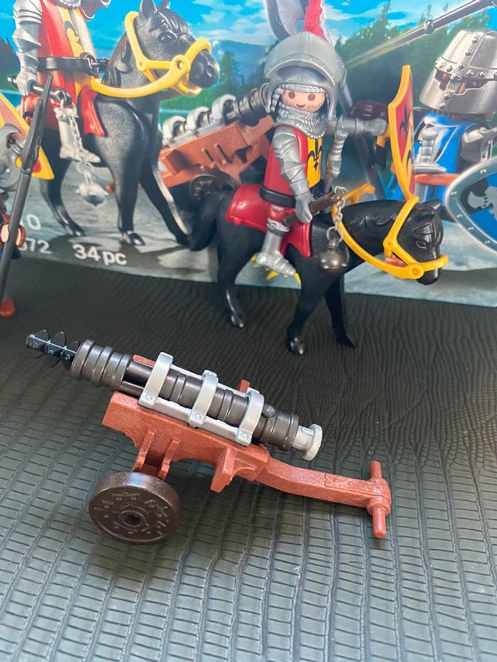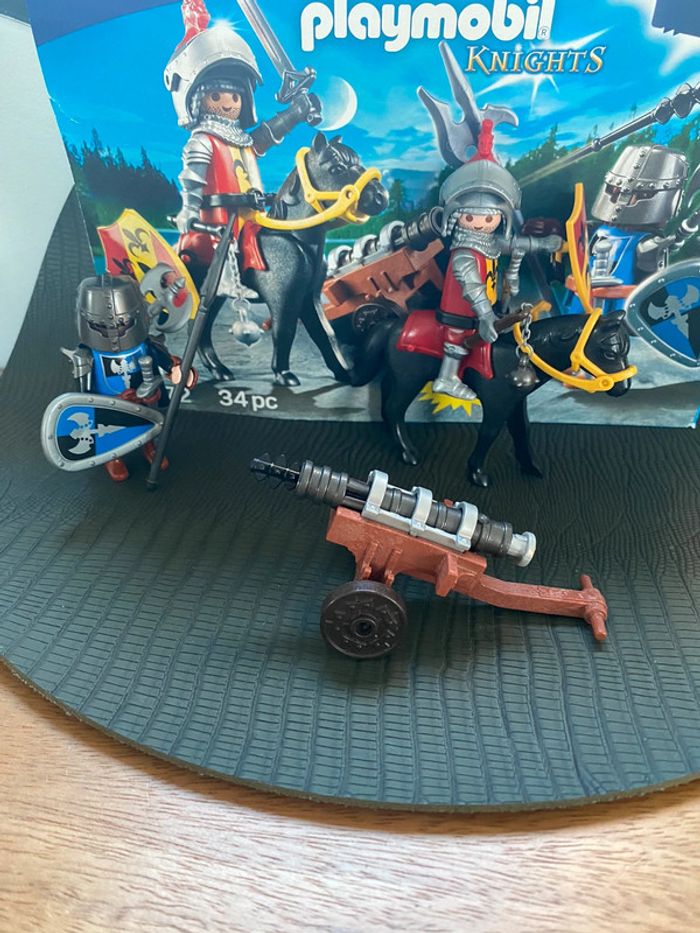 Ensemble de 2 figurines chevaliers en armure avec cheval et canon et tous leur accessoires Parfait état