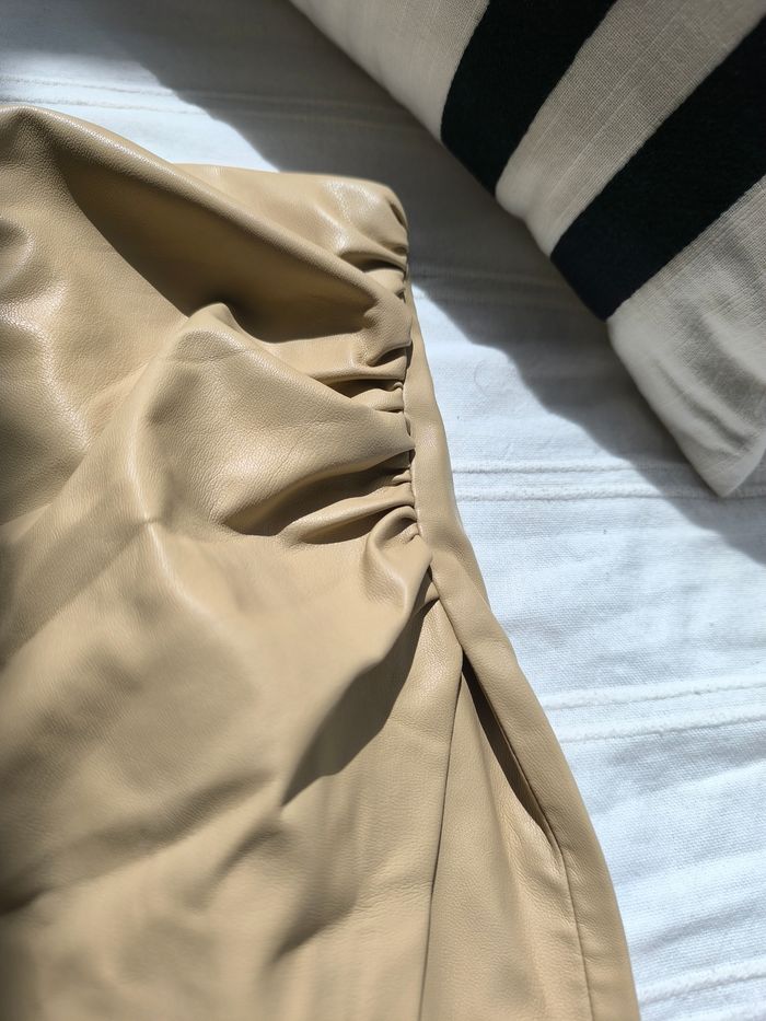 Jolie jupe crayon avec fente côté gauche et froncement au niveau de la taille. Peu porté