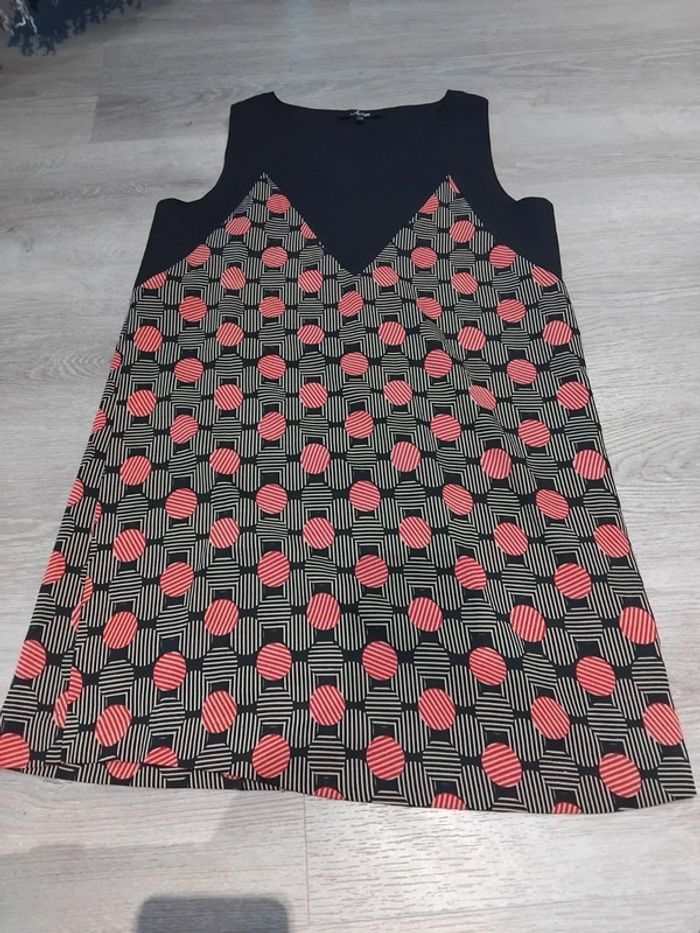 Bonjour, je vends cette robe courte à motifs noirs beige et rouge de la marque An'ge taille M en très bon état. Lavé maison non fumeur.