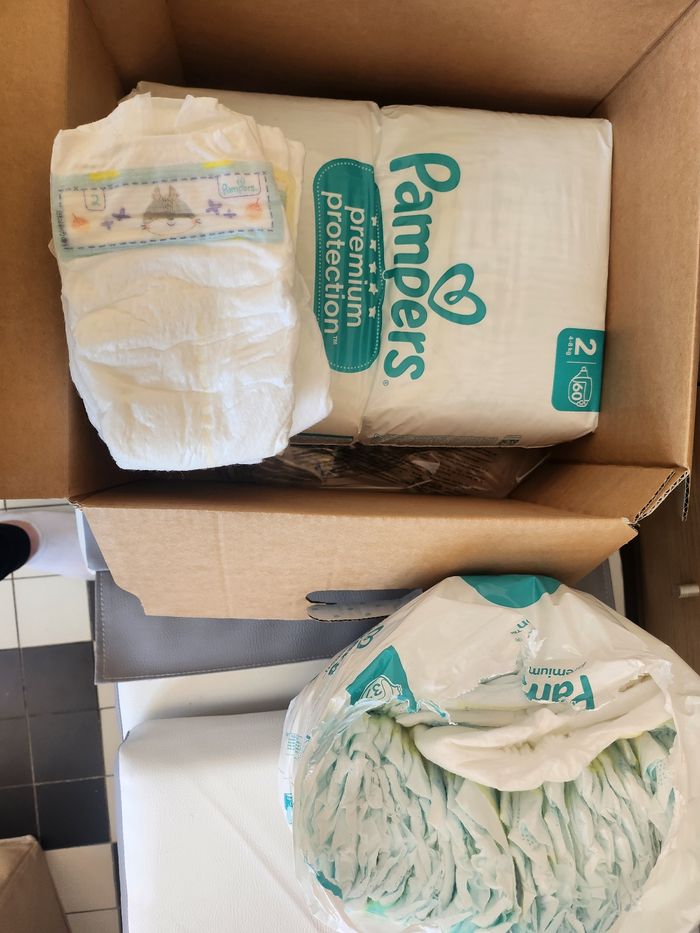 Vente pampers premium taille 2 106 couches au total (un paquet 60 non ouvert + un paquet 37 couches reconstitué (stock nounou + perso) +9 couches.