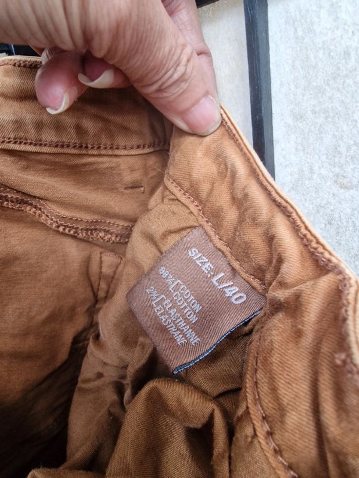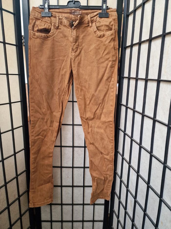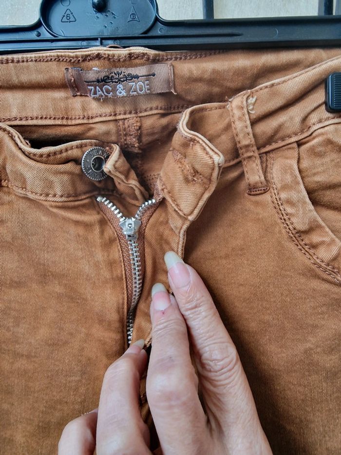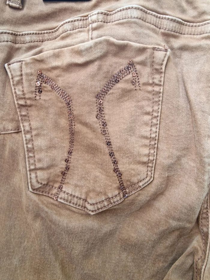 Pantalon camel ZAC & ZOE, taille L, deco sequins au niveau des poches arrière et la petite poche devant , elasthane