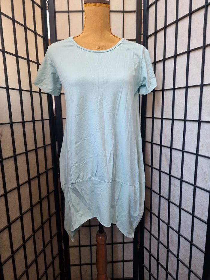 Tunique vert d'eau, taille unique, plus longue derrière, va jusque 42/44