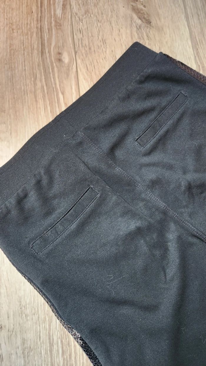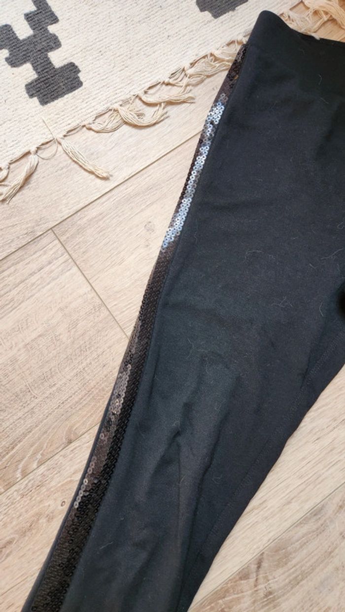 Joli pantalon legging noir avec bandes de sequins noirs latérales. Peu porté