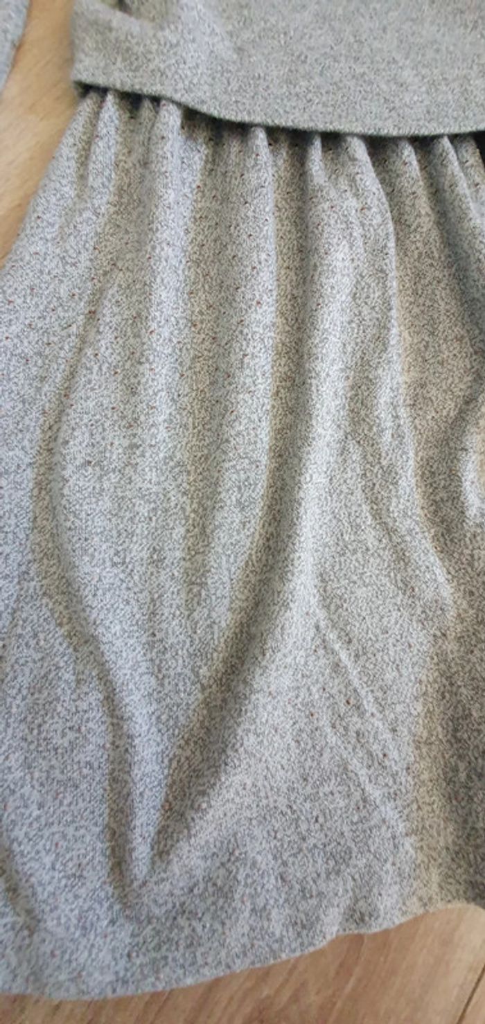 Jolie robe toute douce, assemblage sur la poitrine. Jolis détails sur la jupe, points dorés un peu effacés sur l'assise (photo)