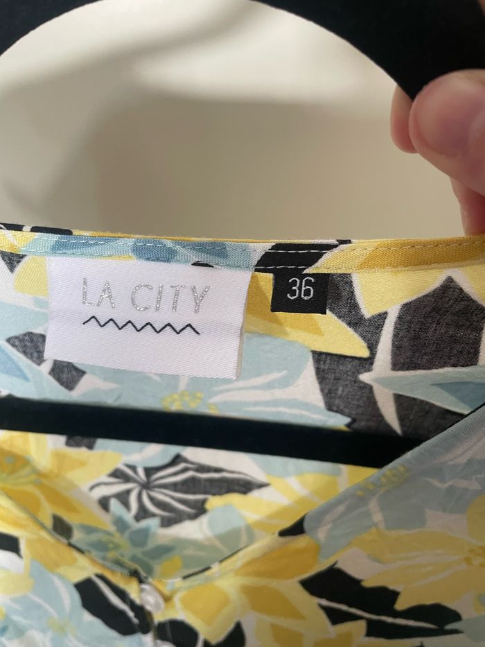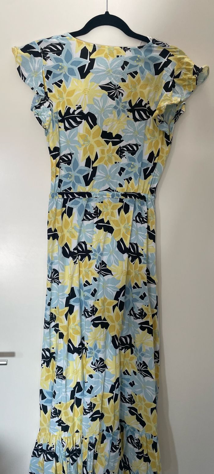 Porter une fois, donc en très bon état. La robe est plus longue à l’arrière que à l’avant. Taille S.
