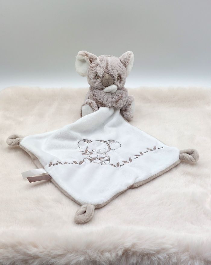 Doudou koala beige marron chiné blanc mouchoir NICOTOY SIMBA TOYS Parfait état, il n'a pas servi de doudou - l'étiquette a été coupée Envoi rapide Réf A12394 #minotresor #peluche #doudou #plush #knuffel #comforter