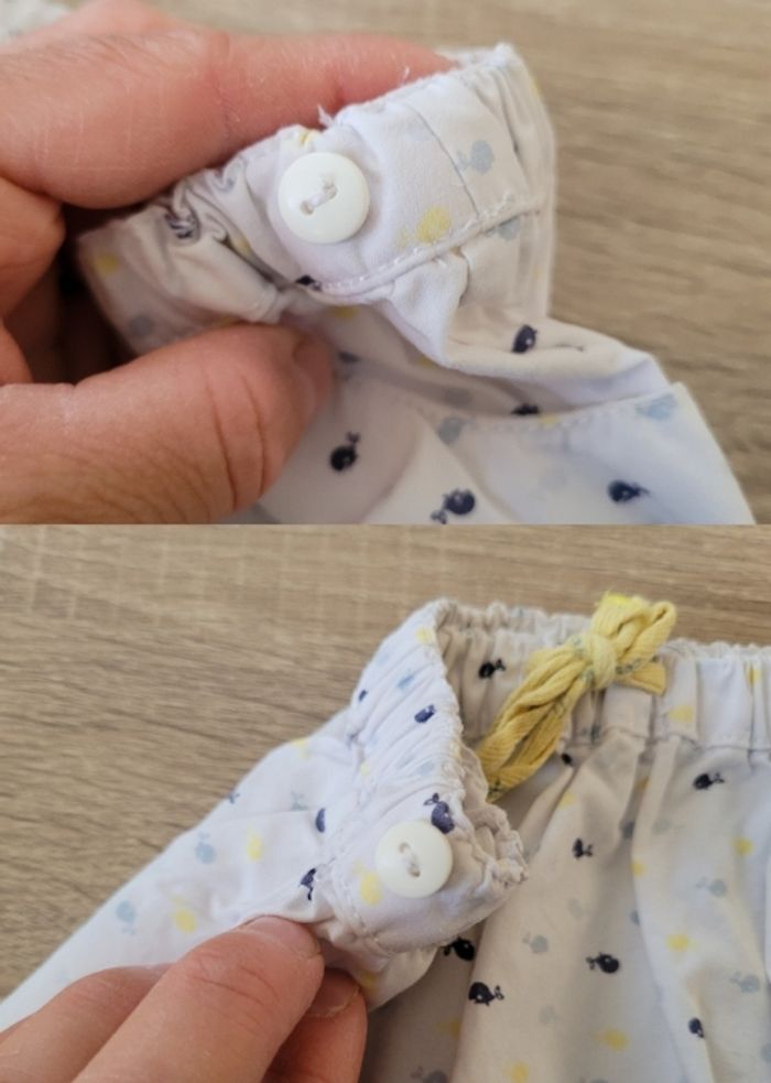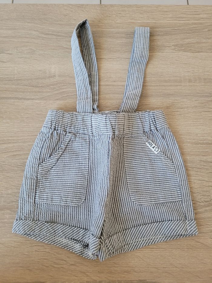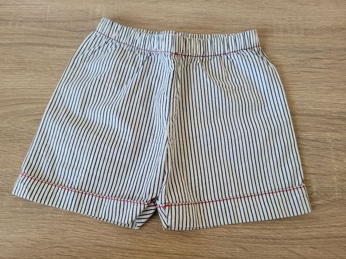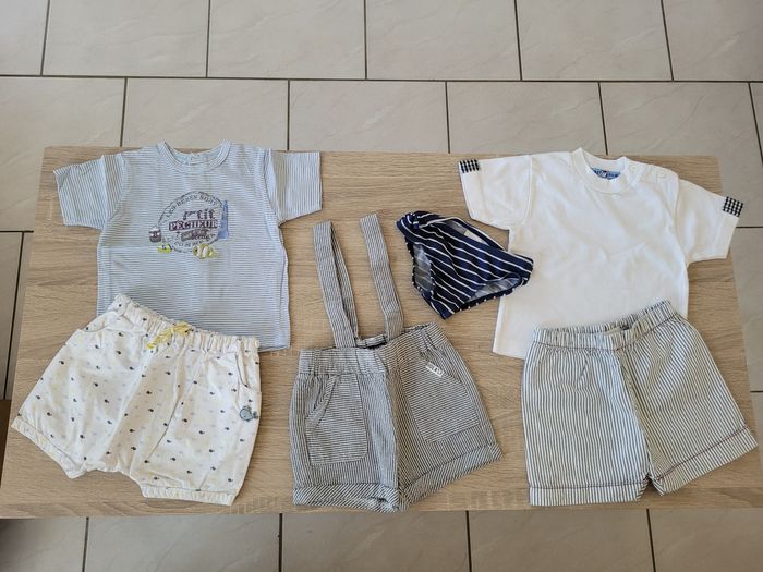 Vend lot d'ensembles garçon taille 6 mois en très bon état et bon état juste des tâches en bas du short Sergent Major qui est réglable grâce à sa ceinture ajustable et normalement il a des bretelles au vu des boutons sur le côté mais je l'ai acheté ainsi de seconde main (voir photos). Lot comprenant 2 tee-shirts manches courtes, un slip de bain et 3 shorts dont un à bretelles.