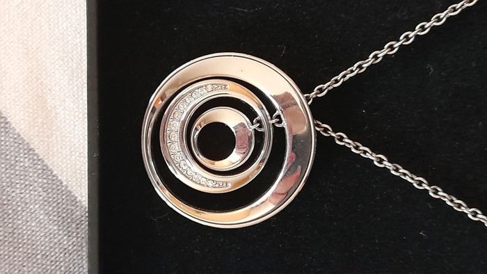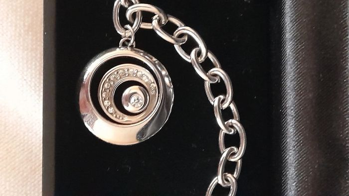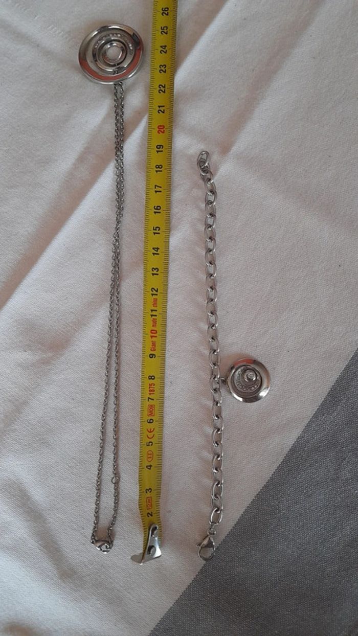 Très peu porté,ensemble collier et bracelet en acier et brillants, morellato, acheté chez bijoutier Marc Orian, vendu avec boîte de ce bijoutier, dimensions voir photos collier 25cm, bracelet 19cm