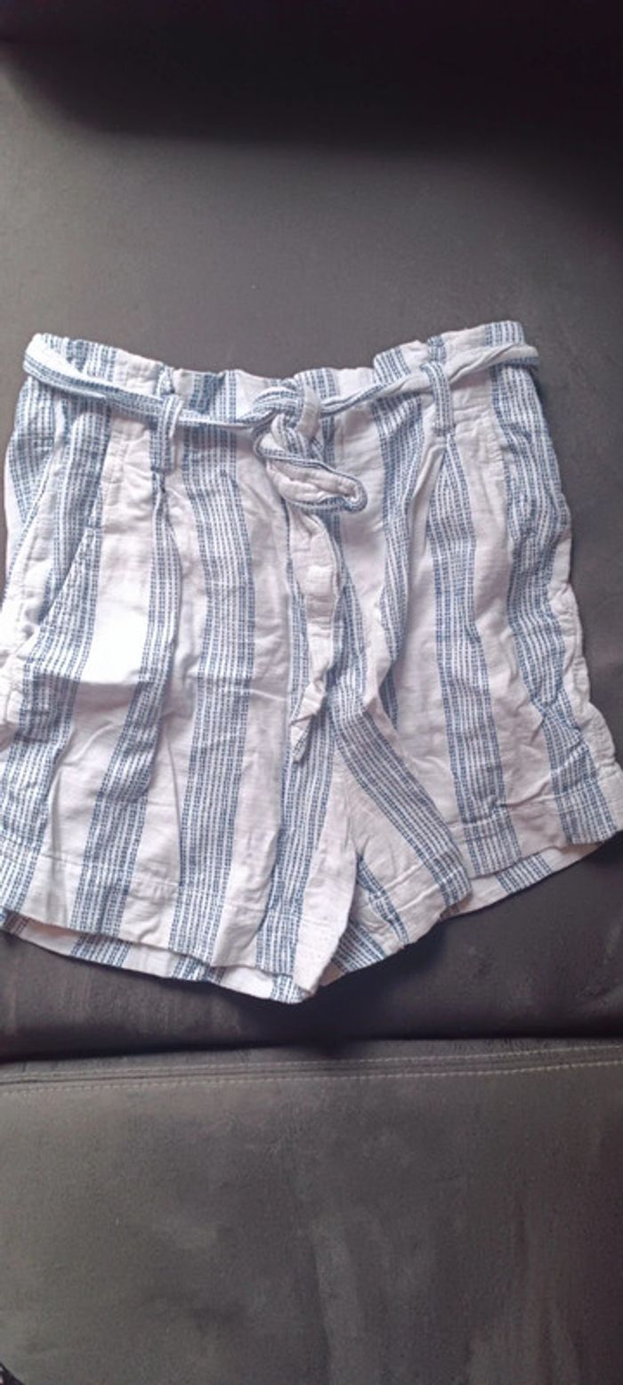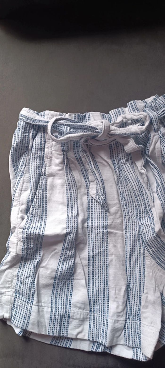 Short taille haute rayé blanc et bleu de la marque H&M en taille 40. Légères bouloches au niveau de l'entre jambe sinon en parfait état.