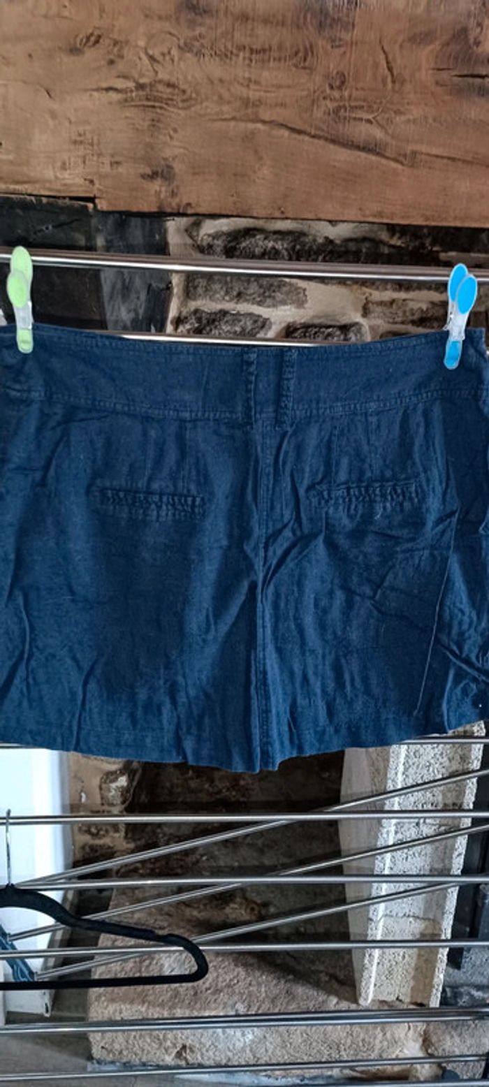 Jupe bleu marine de la marque Kiabi en taille 38. En parfait état. Fermeture éclair avec 2 boutons.