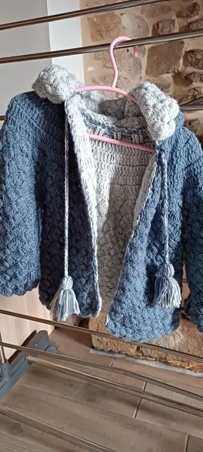 Gilet fait main en laine véritable. Comme neuf. De taille 12 mois.