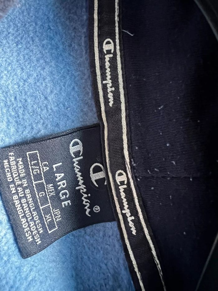 Pull Champions bleu ciel à capuche bon état - photo numéro 4