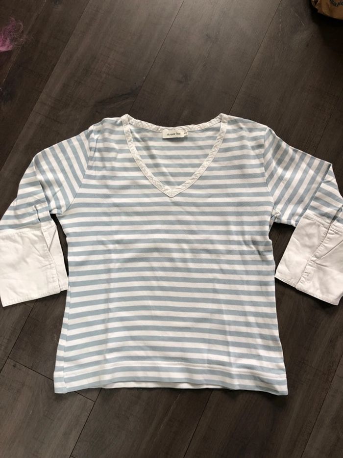 Marinière rayée en coton Armor Lux taille 2 blanc / ciel - photo numéro 1