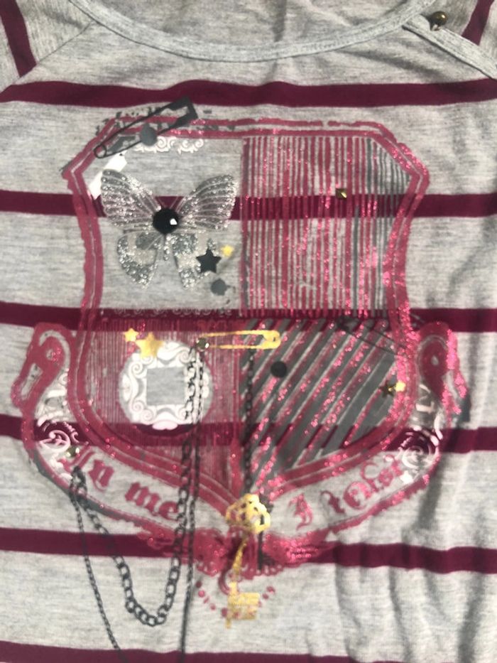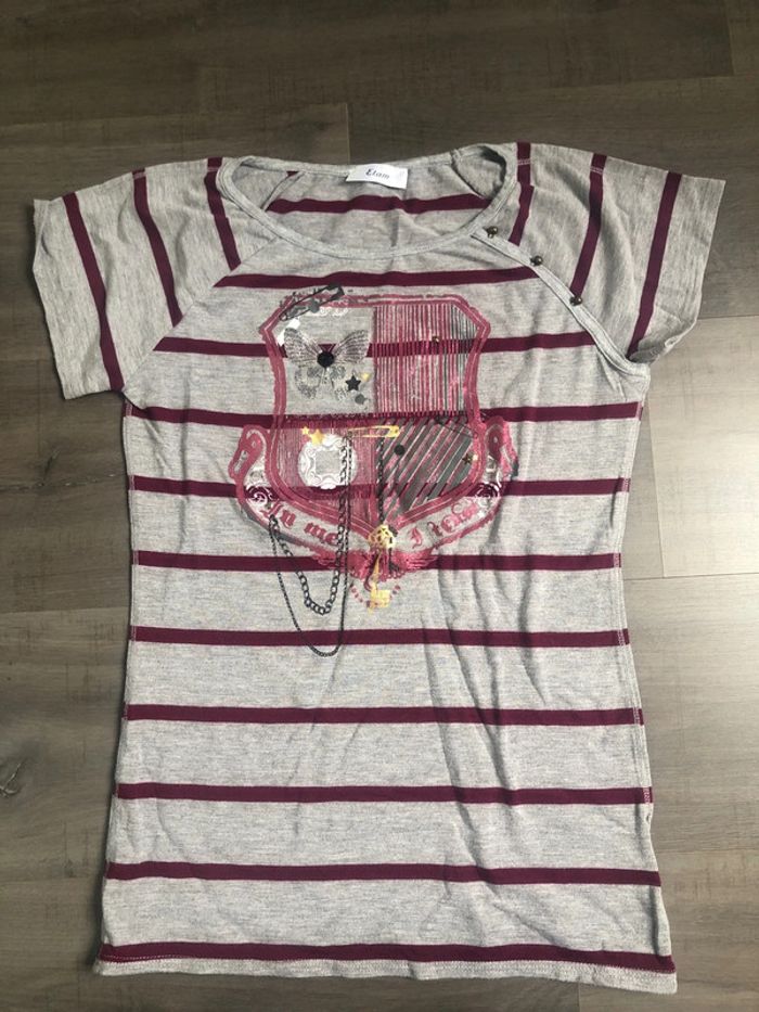 T shirt rock rayé imprimé Etam taille 34 gris bordeaux - photo numéro 2