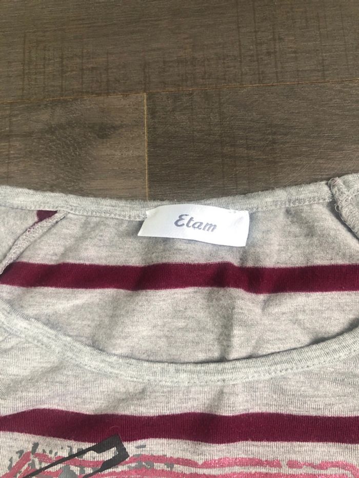 T shirt rock rayé imprimé Etam taille 34 gris bordeaux - photo numéro 3