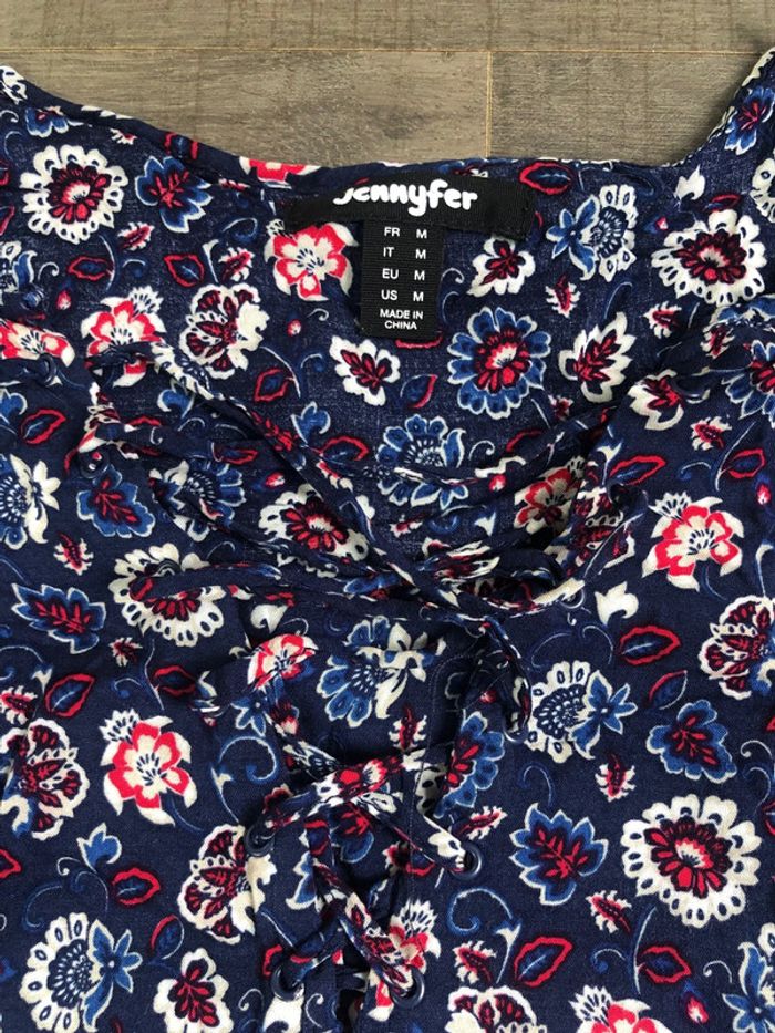 Blouse jennyfer taille M fleurie en viscose Col v avec lacet Manches longues