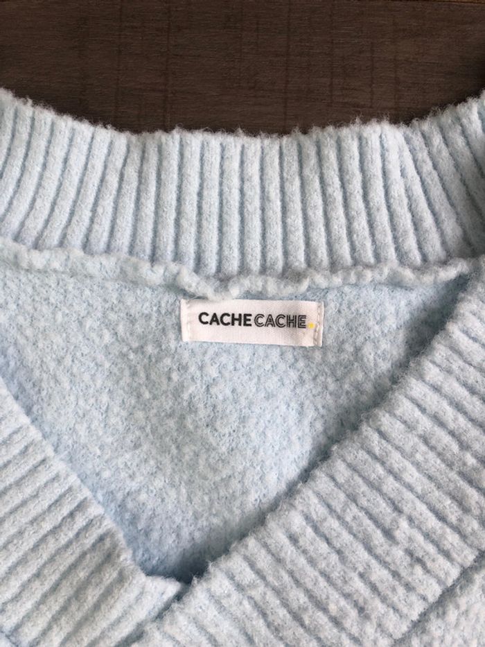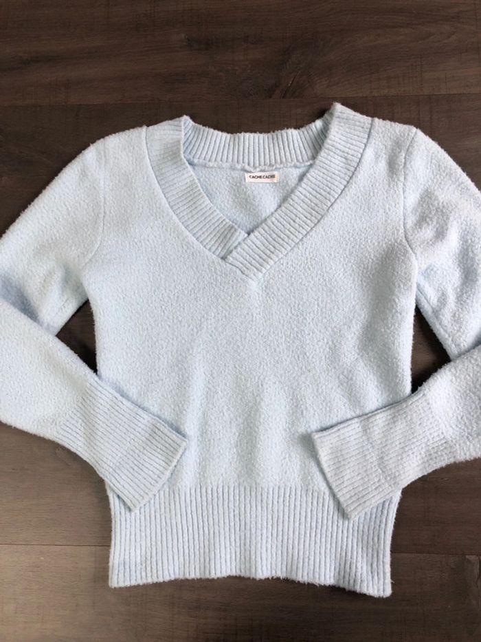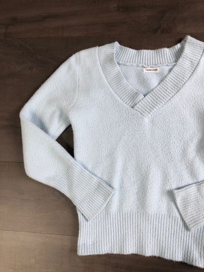 Pull bleu ciel cache cache taille S doux col V