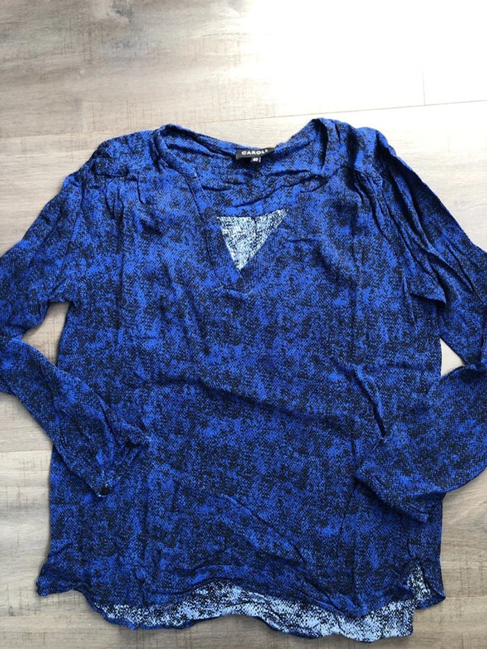 Blouse Caroll taille 40 bleu roi et noir manches 3/4 - photo numéro 1