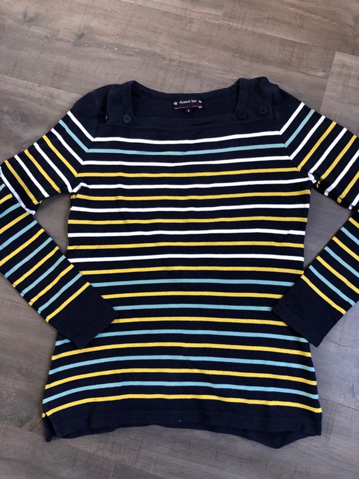 T shirt marinière Armor Lux taille 0 rayée jaune turquoise blanc - photo numéro 1