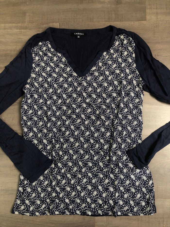 T shirt manches longues Caroll taille 36 imprimé cachemire bleu marine - photo numéro 1