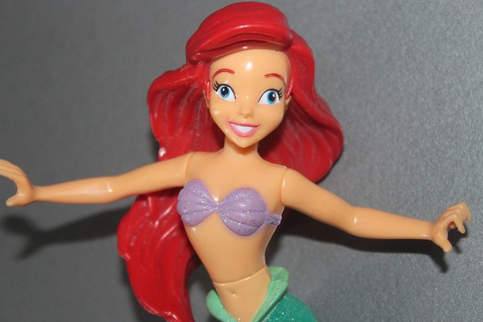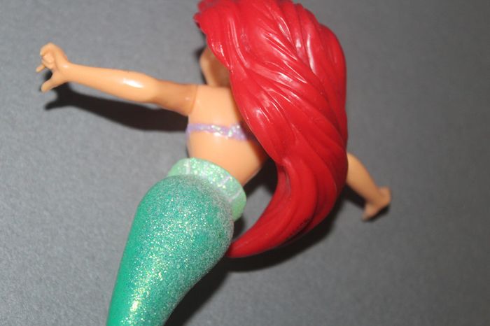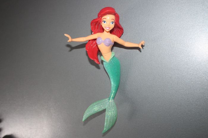 Rare figurine en excellent état d'Ariel la petite sirène en plastique résistant, queue à paillettes. Tête, bras et buste pouvant tourner. Figurine achetée au spectacle de Disney sur glace (29€). Elle a uniquement servie de déco donc quasi neuve. Taille : environ 20cm