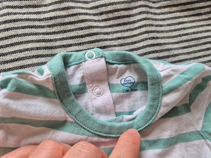 Lot de 2 t shirt à rayures. L un de la marque tex et l'autre de la marque mot d enfants. Le bleu n'a jamais été porté. Taille 12 mois. Tres bon état. #LullolyDouzeMois