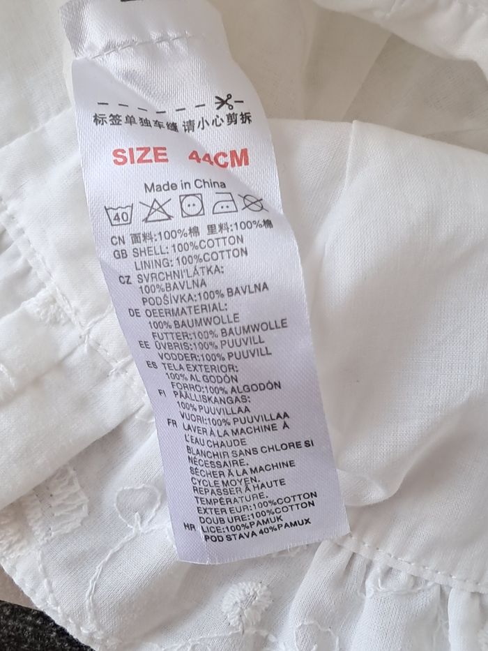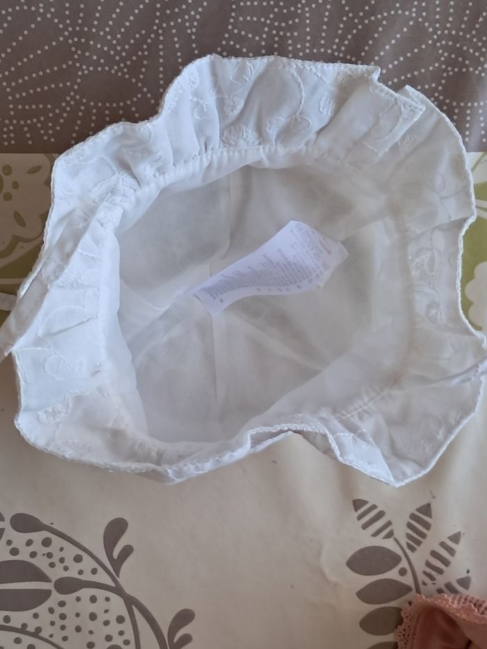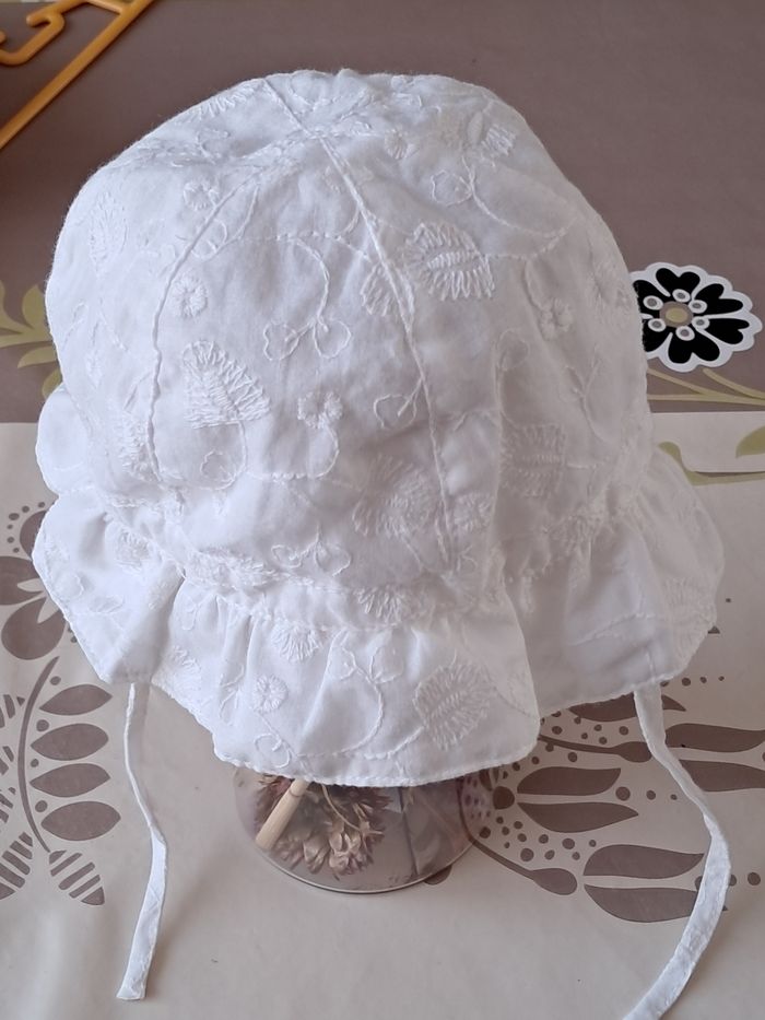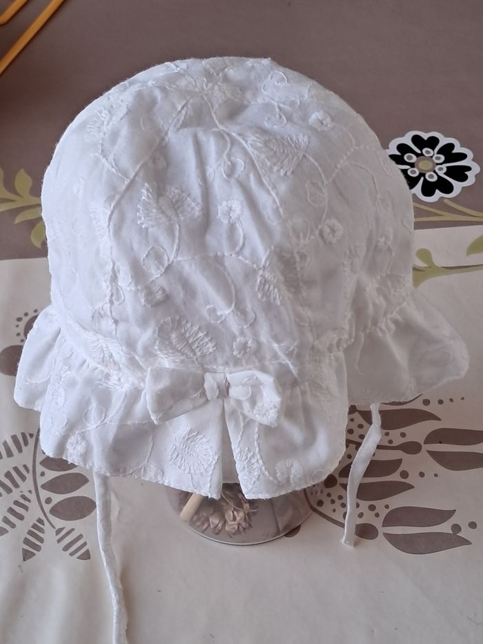 Bob avec liens, blanc cassé à motif floral brodé et noeud de princesse, 44 cm