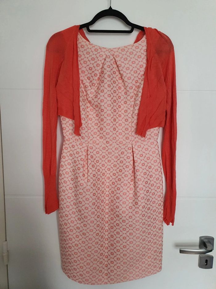 Jolie robe corail avec détails dans le dos 👗 et son boléro assorti Taille 36. Très bon état portée une seule fois. ✨️ N'hésitez pas à faire des lots dans mon dressing pour bénéficier de réductions 😉🛍 Envoi rapide 🚀📦