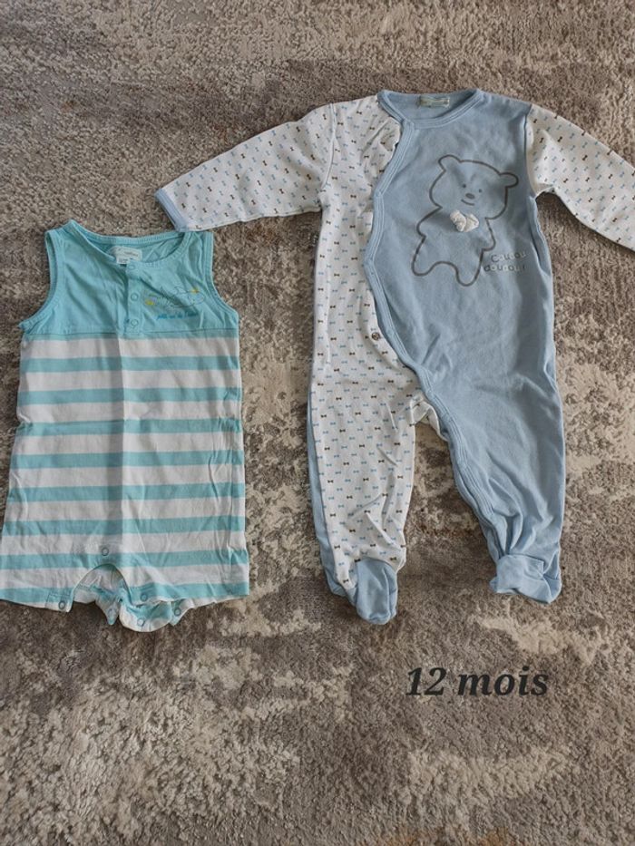 #o_l_a_garçons12mois 👶 Lot printemps / été 9 pièces 12 mois garçon comprenant : 3 t-shirts manches longues 1 pyjama léger 1 barboteuse 2 ensembles ✨️ N'hésitez pas à faire des lots dans mon dressing pour bénéficier de réductions 😉🛍 Envoi rapide 🚀📦