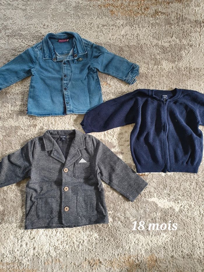 #o_l_a_garçon18mois 👶🏻 Lot de 12 vêtements printemps / été garçon 18 mois comprenant : 2 ensembles 3 vestes (il manque une pression sur la veste en jean) 1 t-shirt / 1 chemises MC / 1 body MC ✨️ N'hésitez pas à faire des lots dans mon dressing pour bénéficier de réductions 😉🛍 Envoi rapide 🚀📦