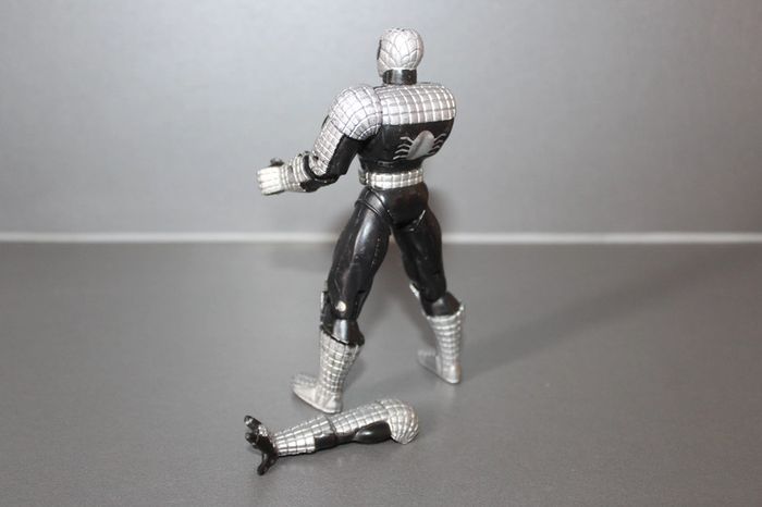 1994 Toy Biz Marvel Black and Silver Armored Spider-Man Action Figure disney avengers super héros spiderman spider man peter parker vintage ancien avenger legend legends pour pièces, bras cassé #figurinegw precy #marvelgw