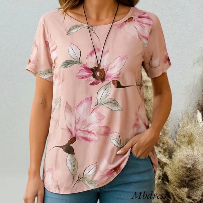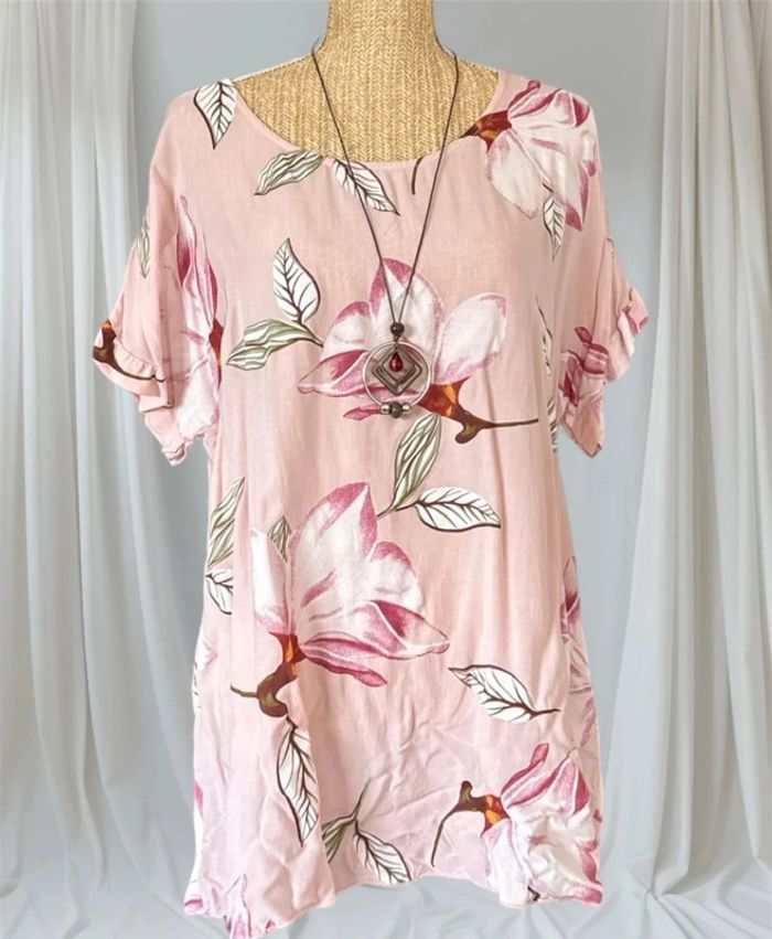 Blouse taille unique 38/44 Avec collier Coloris rose poudré à fleurs