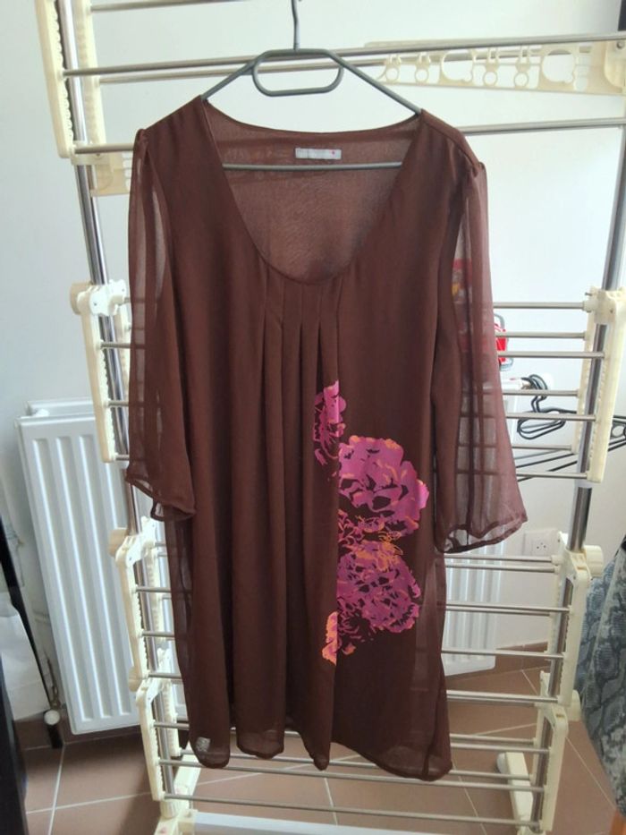Robe marron en mousseline avec fleurs - photo numéro 1