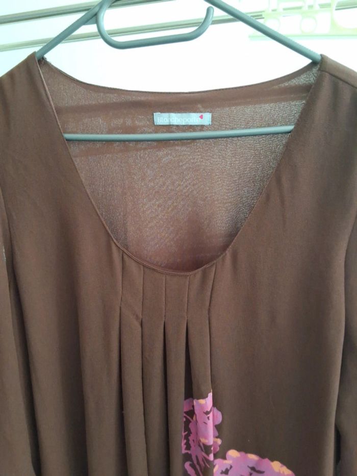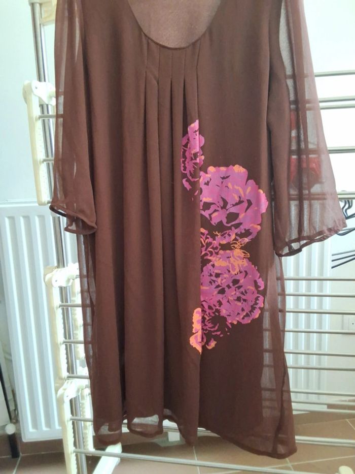 Robe marron en mousseline avec fleurs - photo numéro 2