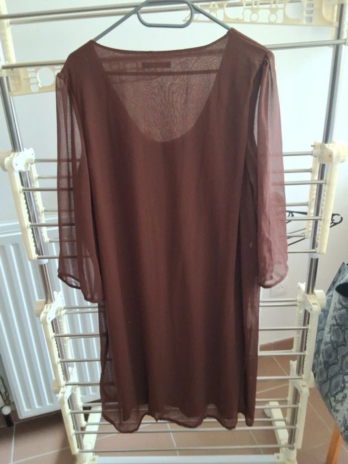 Robe marron en mousseline avec fleurs - photo numéro 3