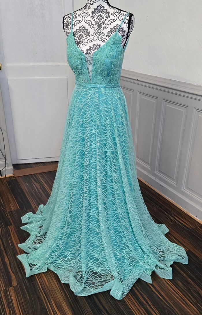 Robe de soirée vert d'eau pailleté taille 36 - photo numéro 1