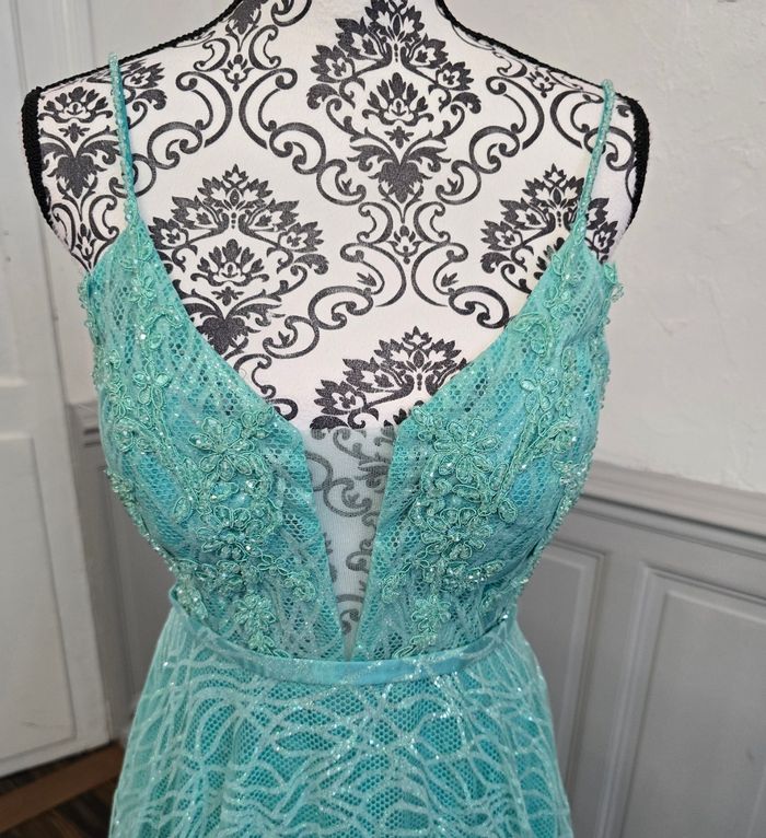 Robe de soirée vert d'eau pailleté taille 36 - photo numéro 7