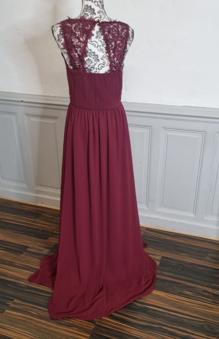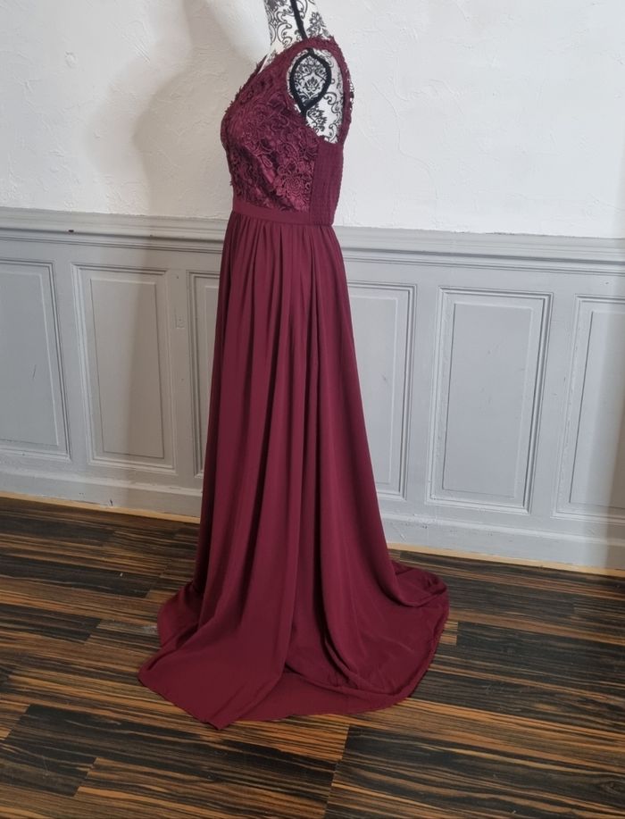 robe cérémonie longue bordeaux buste dentelle taille 46