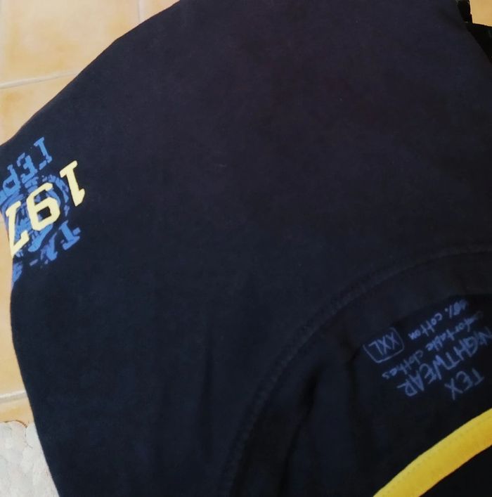 Haut de pyjama homme, bleu marine, la couleur est bien vive pas passée, pas de tâches, pas d accro.