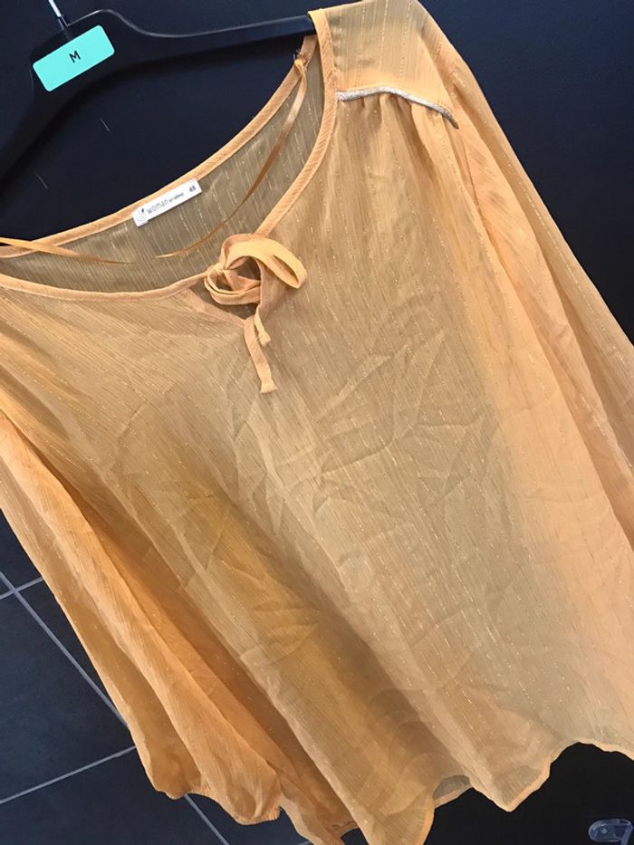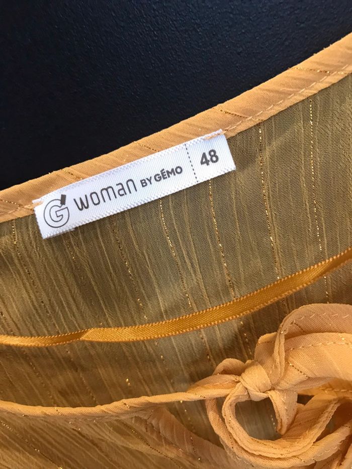 Haut taille 48 de chez Gemo Entièrement transparent Jaune avec des lisérés dorés