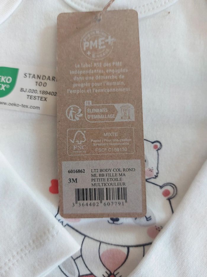 Lot 2 bodies manche longue fille 3 mois neuf - photo numéro 4