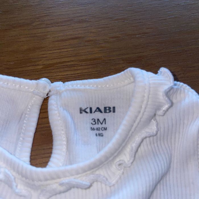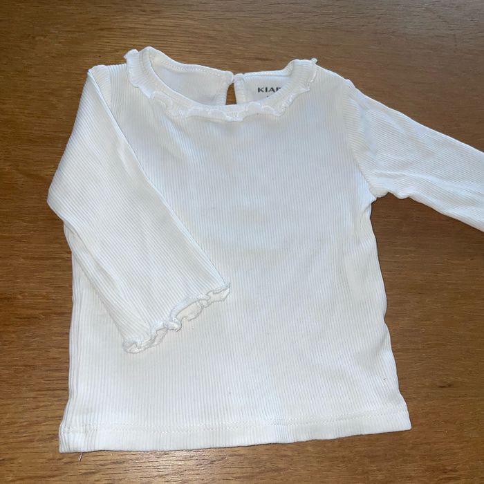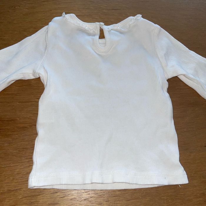En parfait état, porté une fois, il est bien blanc et pas taché, petit détail frisée aux manches et au col
