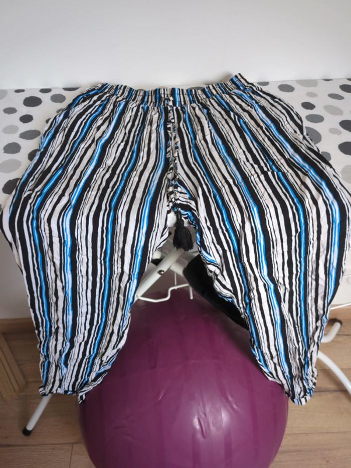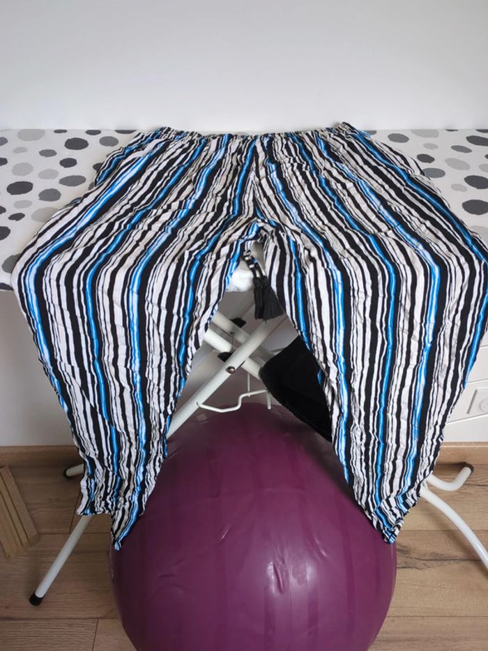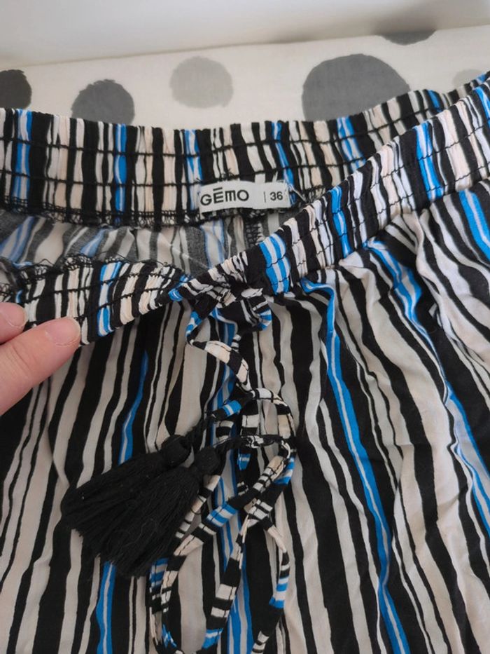 Pantalon souple d'été de marque Gémo, T36, bleu, beige et noir