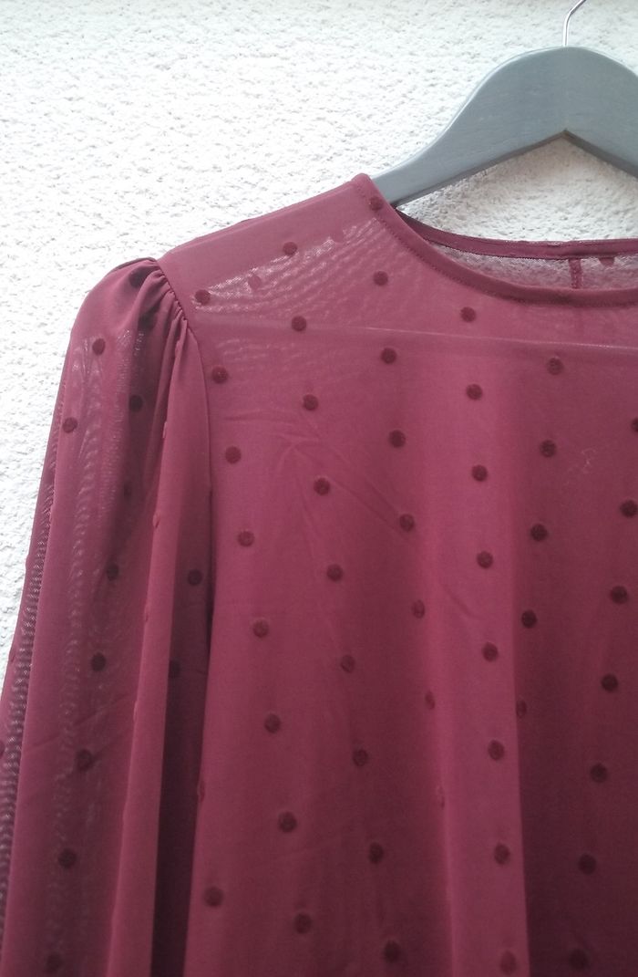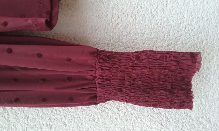 Grands poignets froncés pour un effet bouffant des manches, coloris bordeaux.