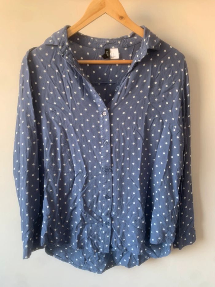 • Chemise à boutons • Marque H&M • Taille S ~ 36 • Couleur bleu et pois blanc • Très bon état #zenletri_femme36