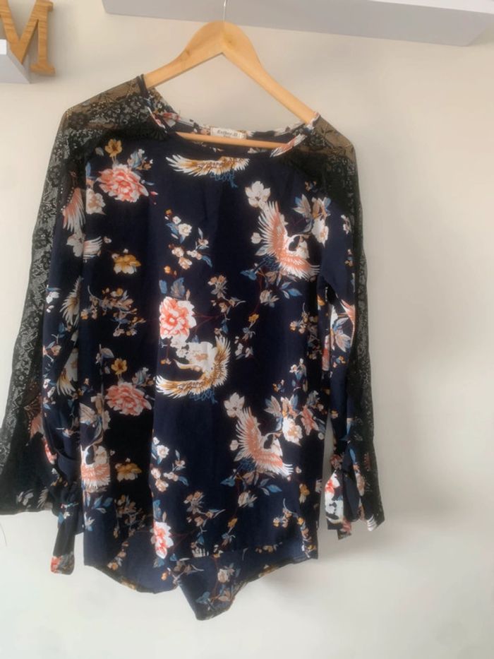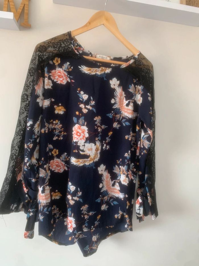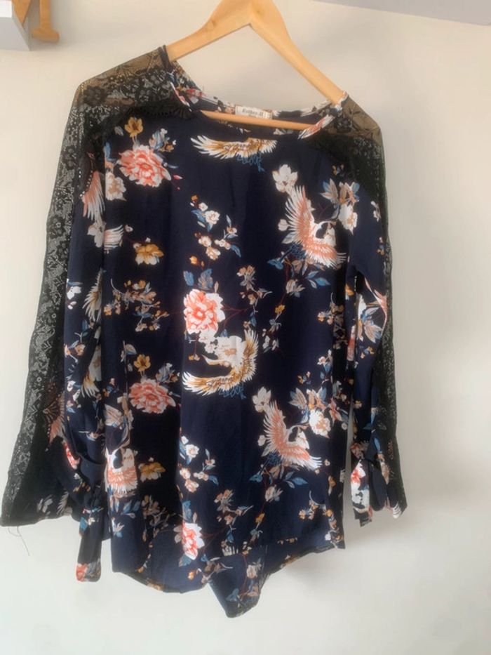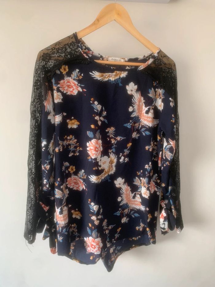 • Taille M • Marque Esther H Paris • bon état ~ léger accroc sur le devant • Dentelle sur les manches #zenletri_femme38 #blousefleurie38 #blousefleurie #blousefemme38
